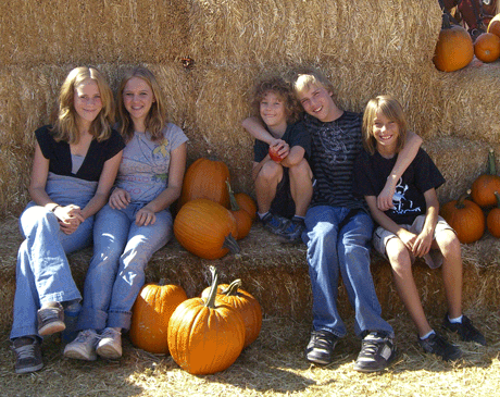 At the pumpkin farm - Miranda, Kayla, Tim, Tyler, Nick (Oct 2008)