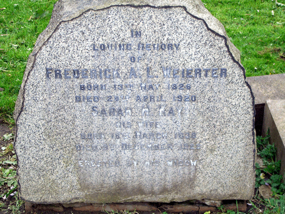 Fred A.L. Weierter's head stone - Fred was brother to Charles Weierter, my great, great grandfather