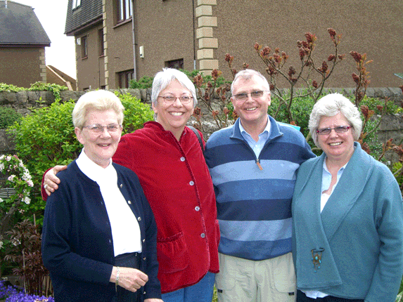 Hazel Weierter, me, John, and Maureen - Hazel's yard in Kirkcaldy, Fife