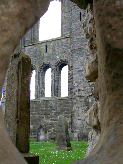 The ruins of St. Andrews, through the wall