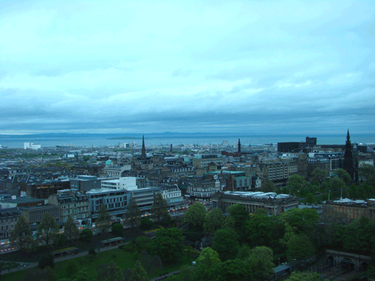 The city of Edinburgh from the castle wall above.